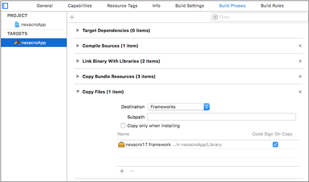 nexacro platformライブラリは、圧縮ファイル形式で提供され、nexacro17.macOS.framework.zipというファイル名で提供されます。提供されるファイルは、圧縮を解放して生成されたプロジェクトの任意のフォルダにドラッグするか、[Add Files to]メニューで追加します。