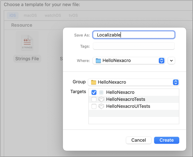 「Save As」にて、ファイル名を「Localizable」に入力します。