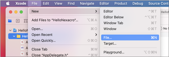 nexacroで開発されたアプリを入れるiOSプロジェクトを生成し、デフォルト環境を設定する必要があります。新しいプロジェクトは、下記のメニューから生成することができます。