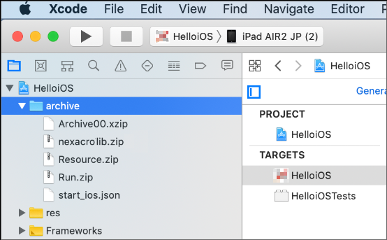Xcodeプロジェクトにarchiveフォルダを追加します。