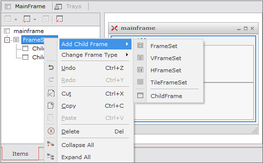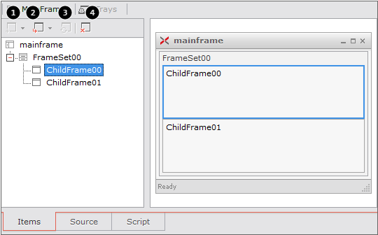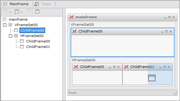 ChildFrameは、MainFrame配下に配置できるフレームでForm情報をUrl形式で保持しており、該当Formを画面に表示する機能を持っています。Formがロードできる基本的な単位を意味します。