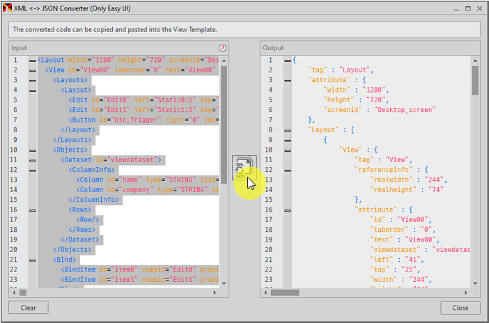 XMLコードをJSONコードに変換したり、JSONコードをXMLコードに変換することができる機能をサポートします。