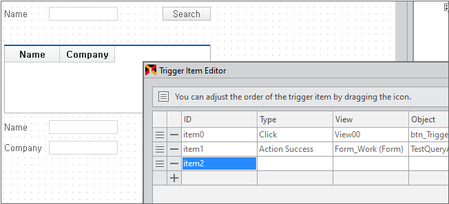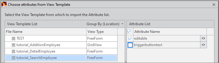FormデザインウィンドウでViewコンポーネントにModelを接続します。View Generation WizardでView Templateを選択して、View Attributes項目設定ウィンドウで「Layout」としてedittypeを設定した項目(view_layout)の横に表示されるボタンをクリックすると、View Layout Editorを実行できます。