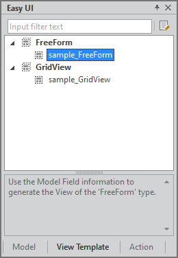 Easy UI Coreの機能として提供されるModel、Viewテンプレート、Actionを作成し、これらを用いて情報の照会や更新を行うUI機能を作成することができます。