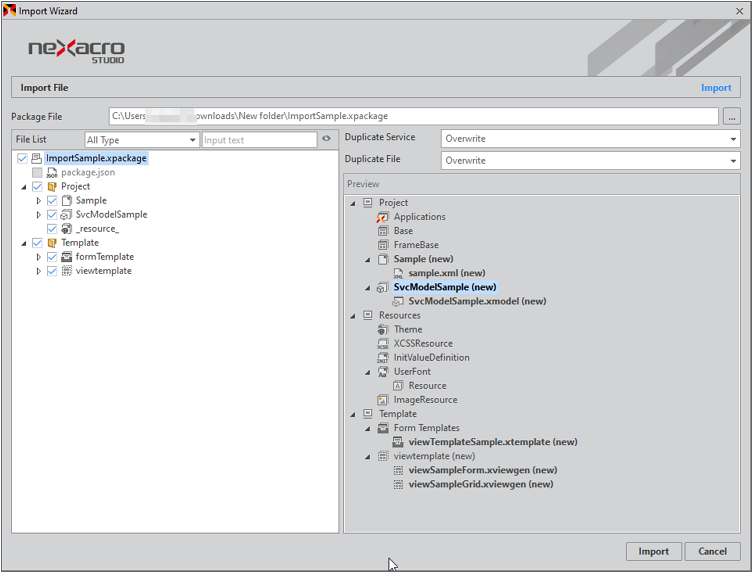 新しいプロジェクトにxpackageファイルをインポートして開始