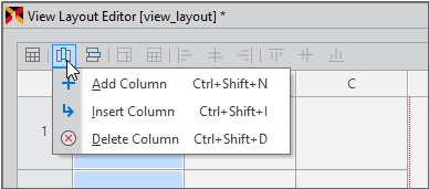 Column、Rowのサイズを-1に設定すると、ViewコンポーネントのサイズよりColumn、Rowのサイズの設定値を差し引いた残りのViewコンポーネントのサイズを均等に分けたサイズで自動設定されます。 例えば、Viewコンポーネントの横サイズが400の場合、Aカラムを200に設定し、B、Cカラムはそれぞれ-1に設定すると、B、Cカラムはそれぞれ100((400-200)/2)に設定されEditorに表示されます。
