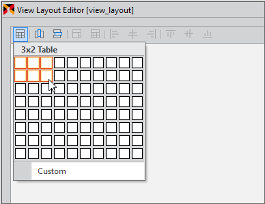 View Layout Editorの実行後、最初に表示される「Create Table」ボタンをクリックして、レイアウトの基本ColumnとRowを設定します。Columnの10個、Rowの8つの組み合わせまでは、碁盤柄のウィンドウでマウス操作で選択でき、それ以上の値は、「Custom」項目を選択してから、直接Column、Row数字を入力できます。