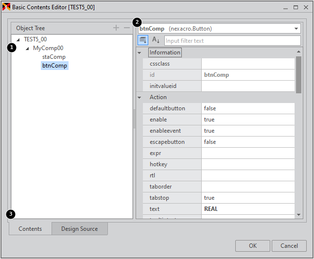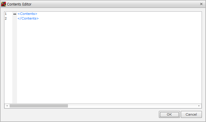 基本的なXMLコードを追加することができるコンテンツエディタです。Pluginコンポーネントのようにcontentsプロパティ値が「true」であり、且つMetainfoでObjectInfoタグのcontentsformatの設定値が「xml」であるオブジェクトの関連プロパティを選択した際に編集することができます。