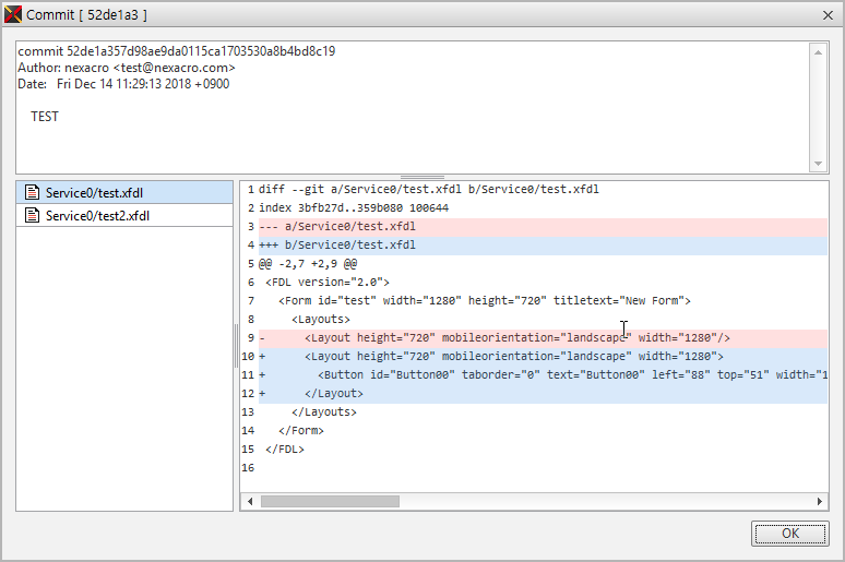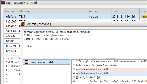 項目をダブルクリックするか、コンテキストメニューの[Show Commit]項目を選択すると、Commit情報ウィンドウを表示します。