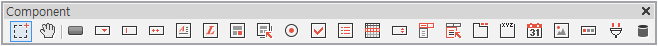 Componentツールバーに表示される項目は、TypeDefinition Objectsリストに登録されたコンポーネントに応じて異なって表示される場合があります。下に表示されるリストは、初期インストール時に提供されるリストの説明です。