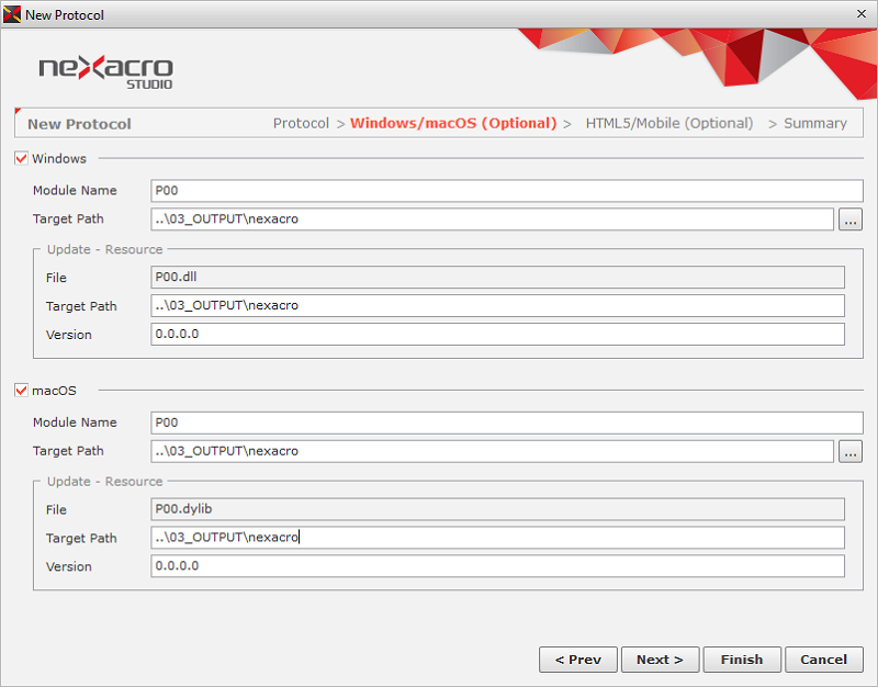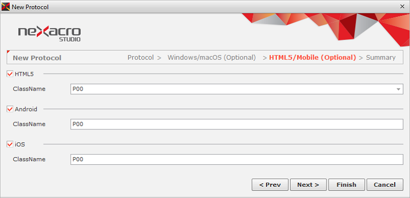プロトコルを追加して、nexacro platformの実行環境ごとに別々に適用することができます。実行環境ごとにプロトコルを呼び出すModuleまたはClass情報をそれぞれ入力することができます。
