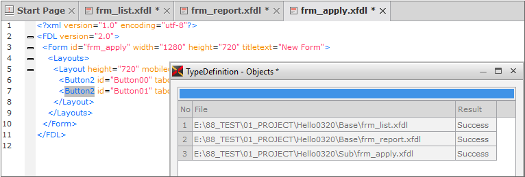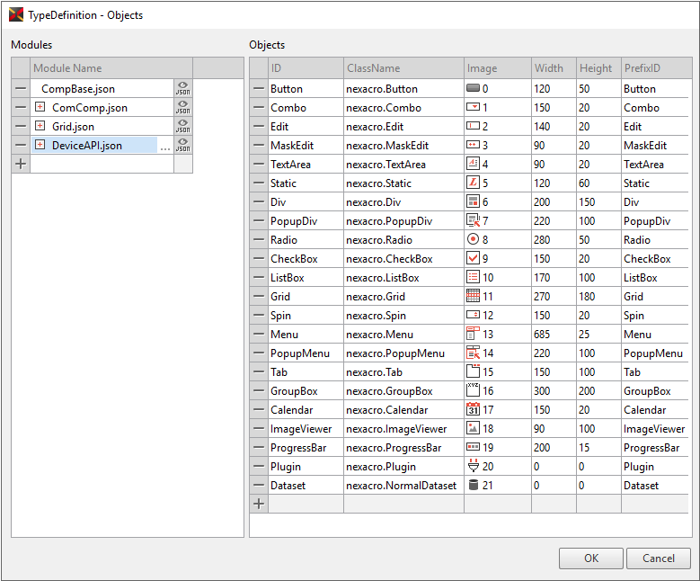 TypeDefinitionはnexacro platformを含むnexacro studioで実行するPrefix情報が含まれています。プロジェクトを編集および実行する実体となるファイルであり、ダイアログボックス型のエディタで新規項目追加、既存項目変更および削除などの編集作業を行うことができます。TypeDefinitionエディタで編集した内容は、XMLに変換され、ファイルに保存されます。