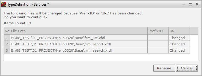 Type Definitionで使用中のServiceのPrefixIDまたはURLを変更する場合、使用中の部分を自動的に変更された項目に変更するリファクタリング機能を実行します。