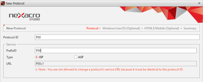 プロトコルの IDです。 Protocol IDは、サービスの URLに使用されます。