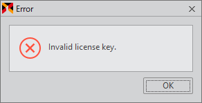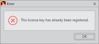 無効な値もしくはすでに認証済のライセンスキーを入力すると、以下のようなエラーメッセージが表示され、ライセンス認証は行われません。