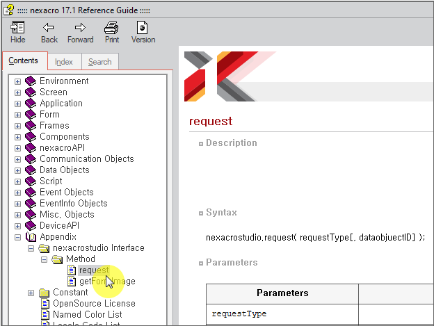 「?」ボタンをクリックすると、nexacrostudioメソッド関連のヘルプを表示します。