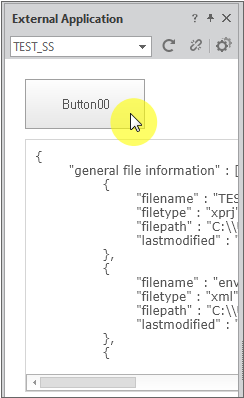 External Applicationウィンドウでボタンをクリックすると、情報が表示されます。