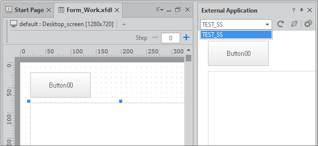 ドロップダウンリストにて、External Applicationウィンドウで登録したアプリケーションを選択すると、画面が実行されて表示されます。