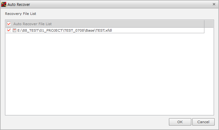 Tools > OptionsメニューでAutoRecover機能の使用の設定と時間を設定すると、nexacro studioで編集するファイルを設定した時間単位で臨時ファイルに保存する機能を実行します。