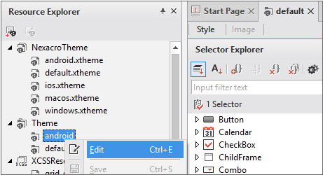 テーマエディタは、Resource Explorerの「Theme」の下に表示されているテーマをダブルクリックするか、コンテキストメニューの[Edit]を選択して開くことができます。