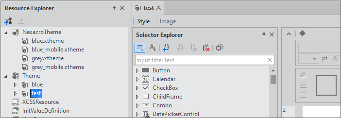 Themeファイルの生成が完了すると、該当編集ビューが自動的に開かれ、ThemeファイルはResource ExplorerウィンドウのThemeに登録されて管理されます。
