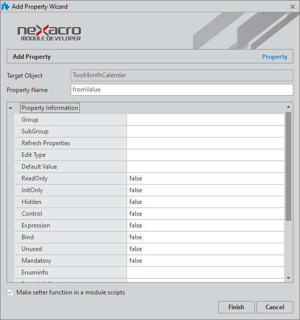Property Information項目では、プロパティに関する情報を設定することができます。例題では、プロパティ関連情報はデフォルト値を保持します。