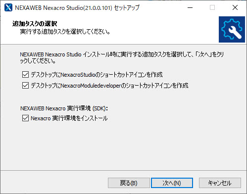 nexacro studioをインストールする際に、ショートカットアイコンを作成するかどうかを指定することができます。