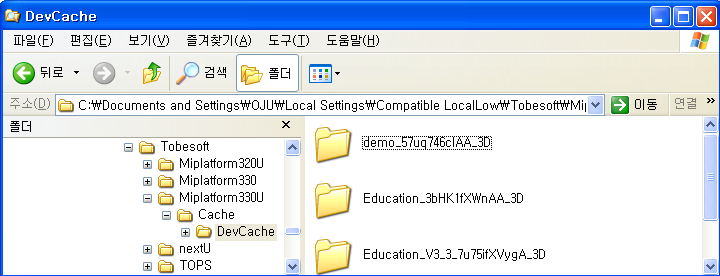 Caching된 정보는 MiPlatform 레지스트리의 CacheDir에 해당 AppGroup별로 압축되어 저장됩니다. 압축된 Cache 정보는 눈으로 소스를 확인할 수 없습니다.