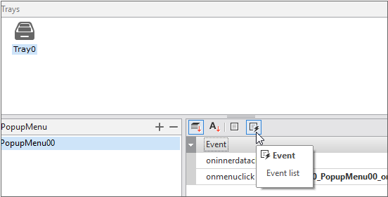 "PopupMenu00" is the PopupMenu component id value to be created in the next step. It makes the menu appear when right-clicking on the tray.