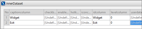 Specify the captioncolumn, idcolumn items as "Widget", "Exit" and the levelcolumn item as 0.