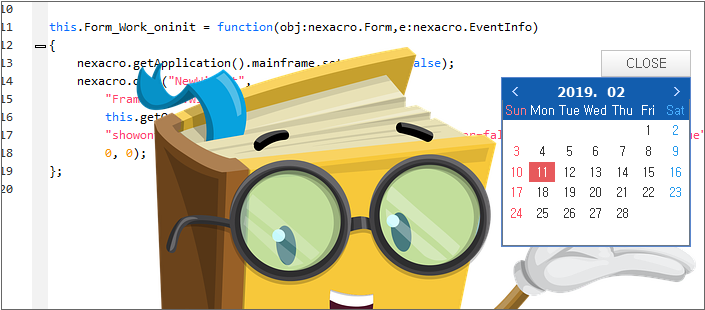 Add the Button component to the Form_Work form and create the onclick event function as shown below.