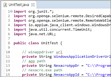 The WinAppDriver linkage function uses the UIAutomation interface provided by the Nexacro to read or write properties of apps running in NRE and to support methodological execution by specifying parameters. You can write unit tests and test using UI automation testing tools, such as Selenium.