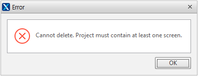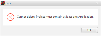 An App Info file is created automatically when you create a project, and you can add more files. A project must include at least one App Info file. Therefore, if you attempt to delete a sole App Info file, Nexacro Studio will not remove it while opening the below alert message.