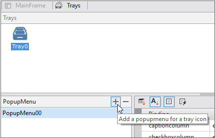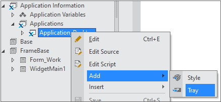 Project Explorer에서 App을 선택하고 컨텍스트 메뉴에서 [Add > Tray] 항목을 선택합니다.
