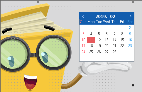 투명 이미지 파일에 맞게 Form 오브젝트의 크기를 조정하고 Calendar 컴포넌트를 적절한 위치에 배치합니다.