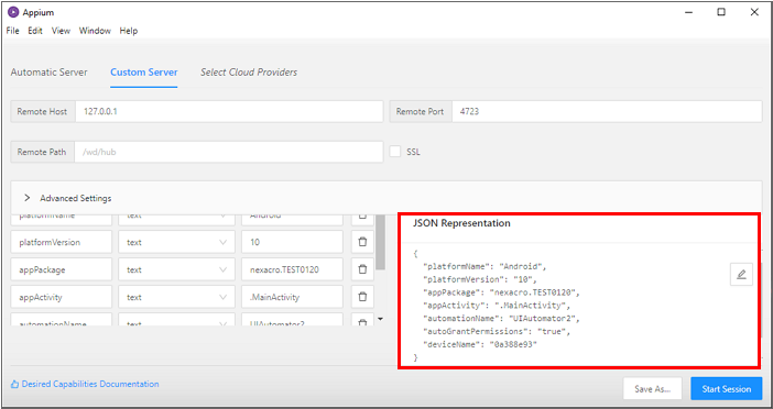 capabilities.setCapability("appPackage", "nexacro.TEST0120");