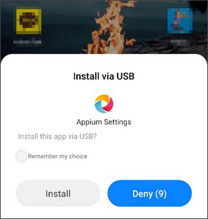 최초 실행 시에는 단말기에 Appium Settings 앱이 설치됩니다.