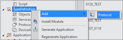 Project Explorer에서 TypeDefinition 항목을 선택하고 컨텍스트 메뉴에서 [Add > Protocol]을 선택합니다.