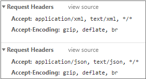 };통신 시 헤더 Accept 정보가 변경된 것을 확인할 수 있습니다.