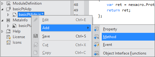 Project Explorer에서 오브젝트를 선택하고 컨텍스트 메뉴에서 Method를 추가해 설정합니다.