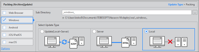서버 연결 없이 실행할 수 있도록 Update Type은 "Local"로 지정합니다.