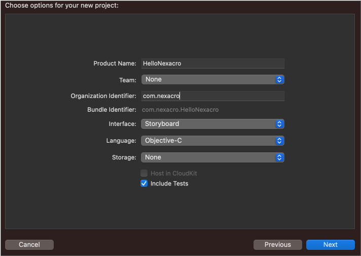 Xcode에서 아래와 같은 절차에 따라 iOS용 앱 프로젝트를 개발합니다. 앱 프로젝트를 진행하기 전에 넥사크로 스튜디오에서 만든 아카이브 파일은 지정된 경로에 위치해야 합니다.