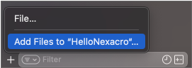 Xcode의 프로젝트 탐색기 하단의 + 버튼을 클릭하여 [Add Files to "프로젝트명"]을 선택합니다.