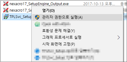 설치 시 관리자 권한으로 실행하지 않은 경우에는 서비스 동작 시 오류가 발생할 수 있습니다.