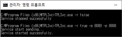 TPLSvc_Setup.exe –r true –p 8080 –p 8888