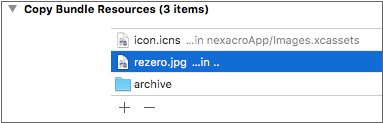 Copy Bundle Resources 에 이미지 파일 추가 후 main.m 파일을 수정합니다.