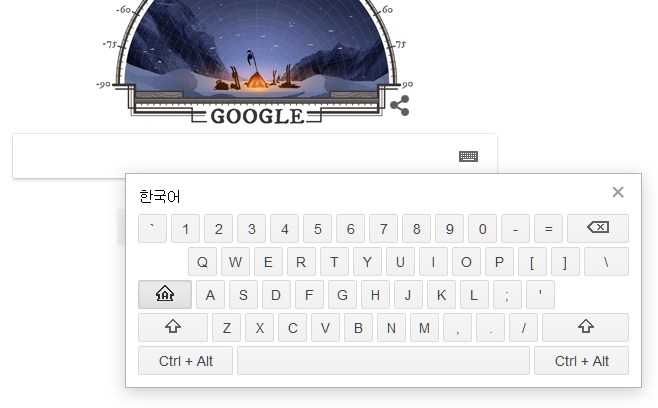 The following is a search page of Google, a representative search engine. Google's search page supports keyboard-type input tools to help user input, and this keyboard-like UI can be created with PopupDiv.