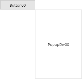 The following is an example of placing the PopupDiv component on the screen using the trackPopupByComponent method. The trackPopupByComponent method sets the coordinates based on other components. In the example, PopupDiv00 is placed on the screen based on Button00.
