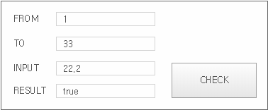Return true if there is a desired value (INPUT) between the two input values (FROM, TO), otherwise, return false.