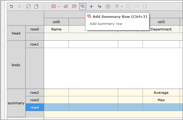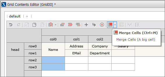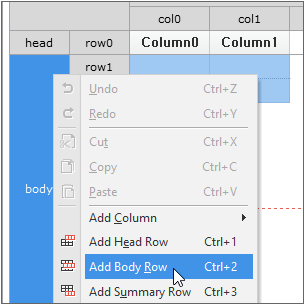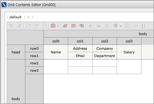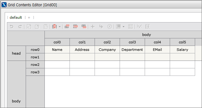2. Add Head row, Body row one by one. To add row, click the Add Head Row button and the Add Body Row button once each in Grid Contents Editor. The same context menu that allows you to add row is displayed even if you right-click in Grid Contents Editor.